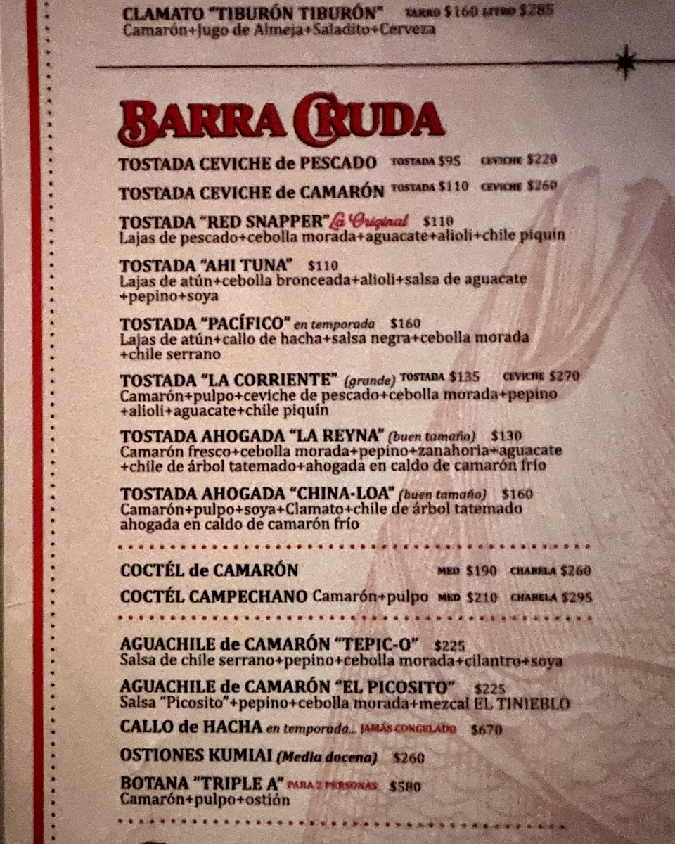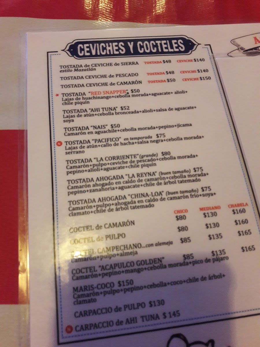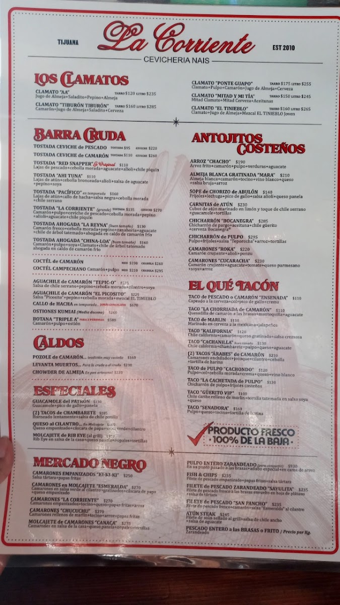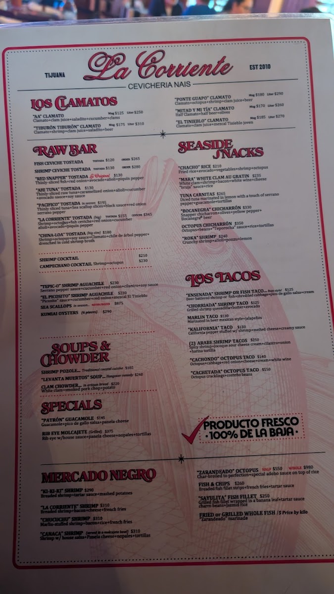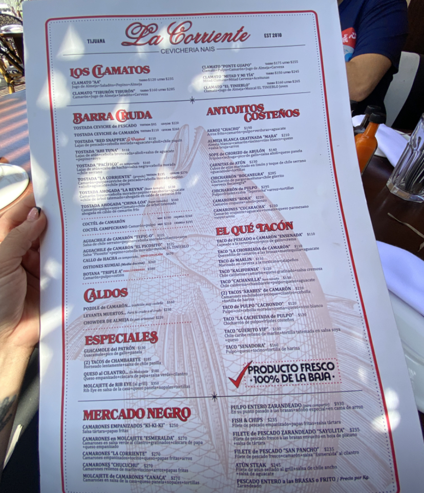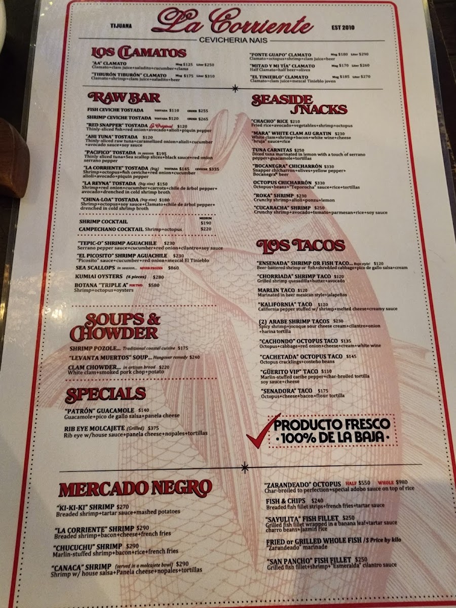 Introducing the Menu at La Corriente Cevicheria Nais - 22000 Tijuana